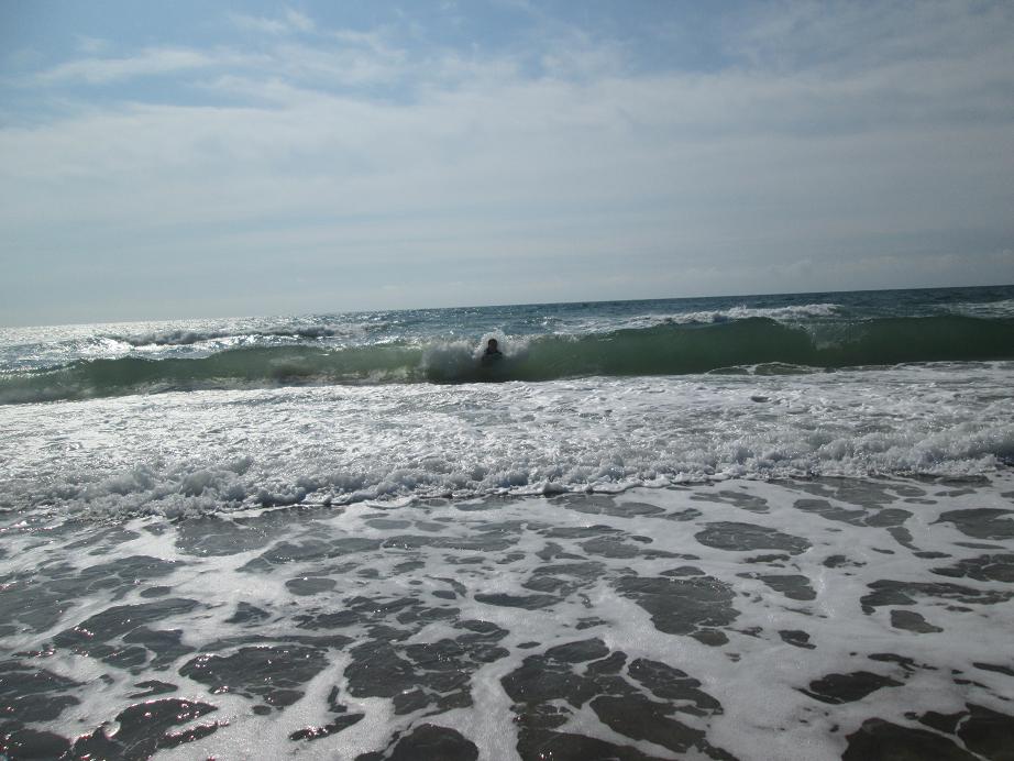 Jeremiah catching some waves before starting College on Monday ! Great beach day !