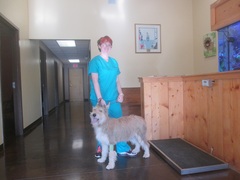 Emily taking Junie B back for her first litter of puppies, 6-3-16